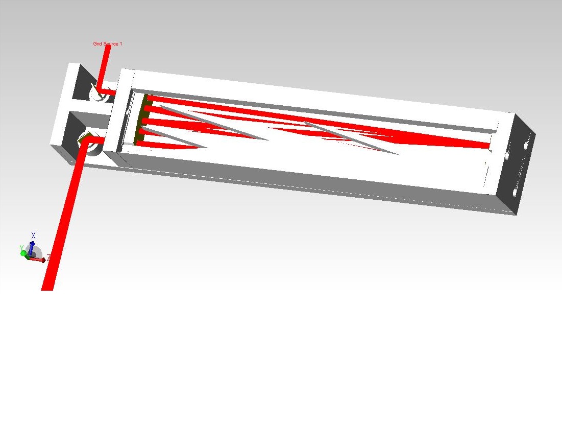 多次反射型气体池,光程一般比较长,光程长度为物理长度的几倍或几十倍。光经过气体池入光口射入,穿透窗片进入气体池,与气体内部的多组镜片
