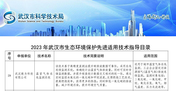 经公开征集、单位申报和专家评审等多项程序,该目录名单于近日正式公布,敢为科技的“温室气体在线监测系统”技术入选。